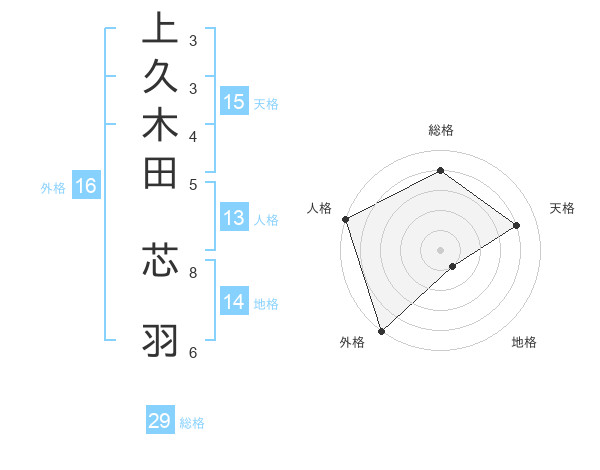上久木田 芯羽さんを姓名の画数から五運を鑑定