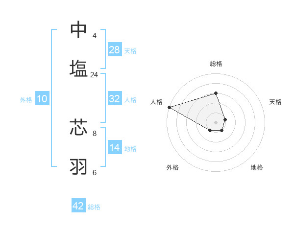 中塩 芯羽さんを姓名の画数から五運を鑑定