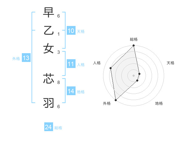 早乙女 芯羽さんの総格は24画の5点!