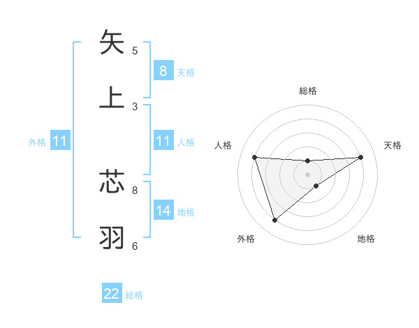 矢上 芯羽さんの総格は22画の1点!