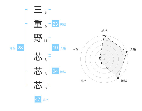 三重野 芯芯芯さんの総格は47画の5点!