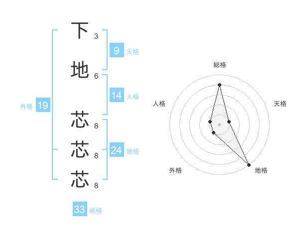 下地 芯芯芯さんを姓名の画数から五運を鑑定