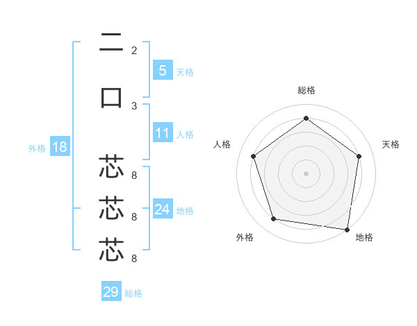 二口 芯芯芯さんを姓名の画数から五運を鑑定