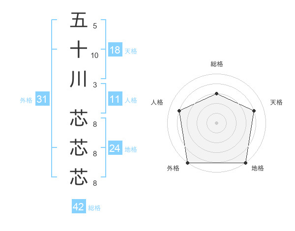 五十川 芯芯芯さんを姓名の画数から五運を鑑定