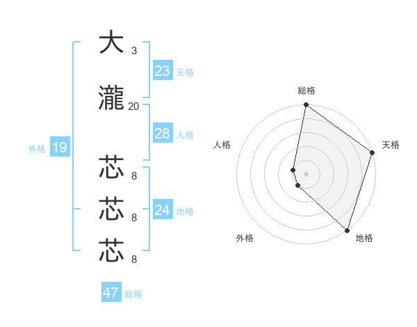 大瀧 芯芯芯さんの総格は47画の5点!