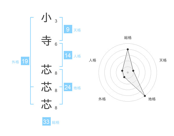 小寺 芯芯芯さんの総格は33画の4点!