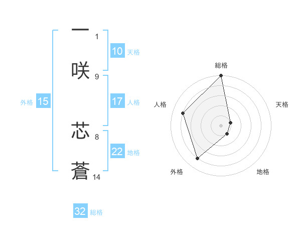 一咲 芯蒼さんの総格は32画の5点!