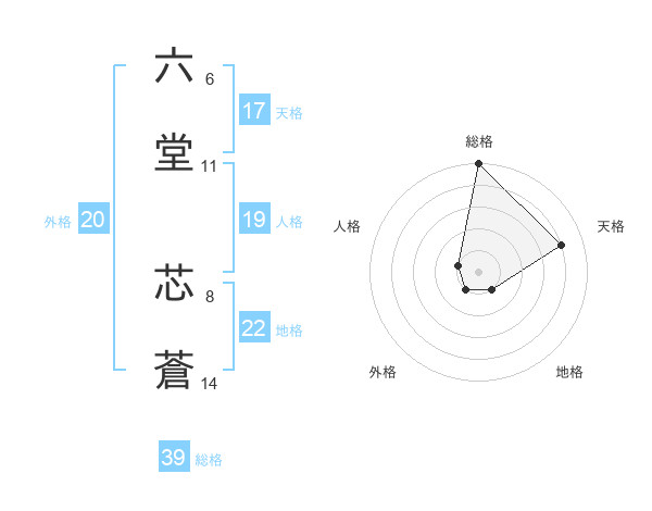 六堂 芯蒼さんの総格は39画の5点!