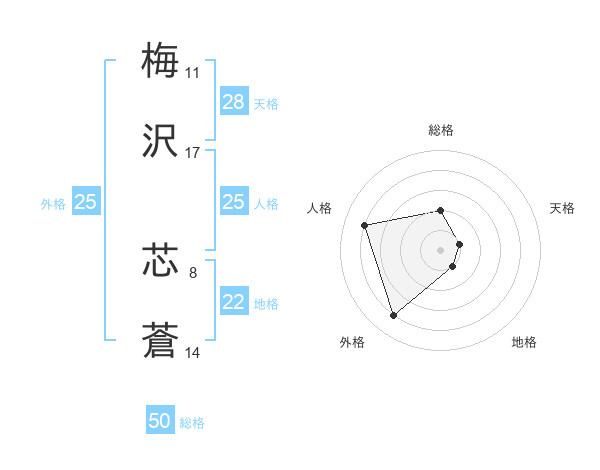梅沢 芯蒼さんを姓名の画数から五運を鑑定