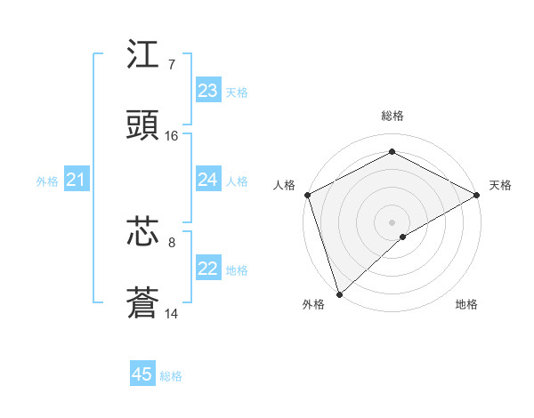 江頭 芯蒼さんを姓名の画数から五運を鑑定