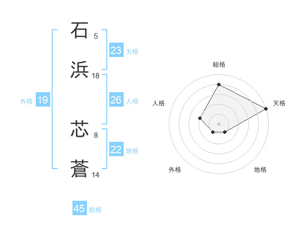 石浜 芯蒼さんの総格は45画の4点!