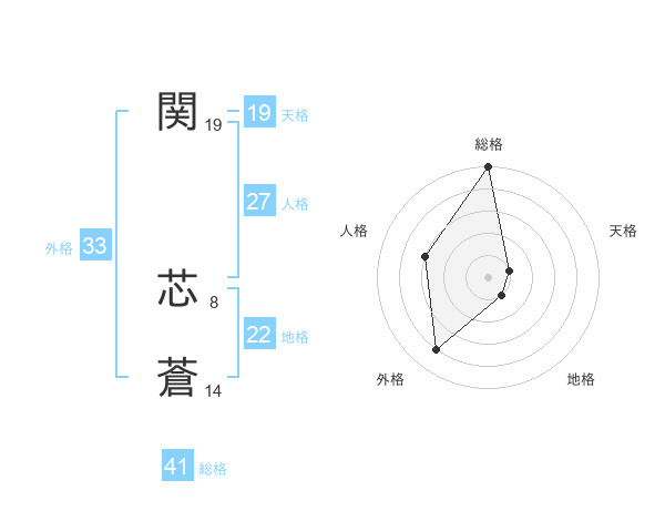 関 芯蒼さんの外格は33画の4点