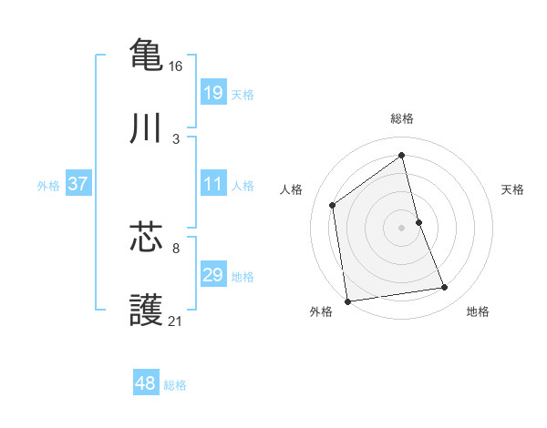 亀川 芯護さんの総格は48画の4点!