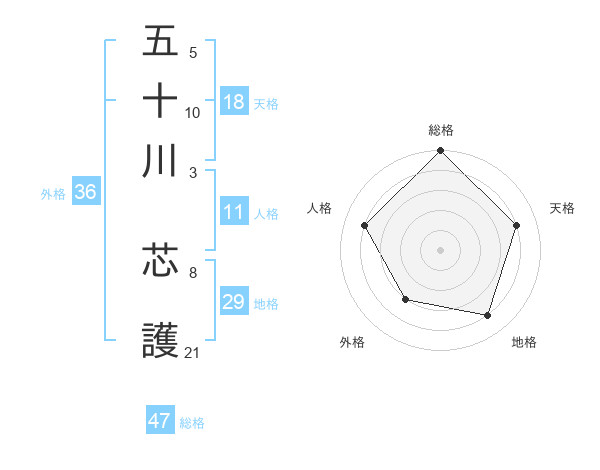 五十川 芯護さんの総格は47画の5点!