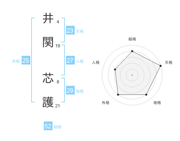 井関 芯護さんの総格は52画の4点!