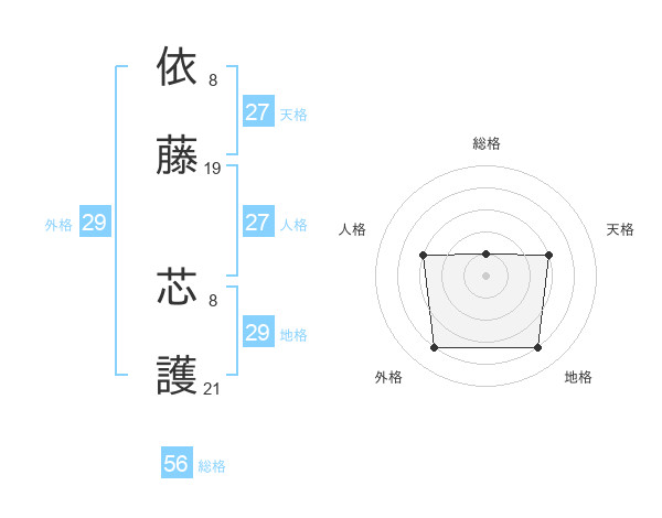 依藤 芯護さんを姓名の画数から五運を鑑定