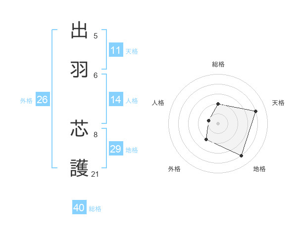 出羽 芯護さんを姓名の画数から五運を鑑定