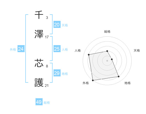 千澤 芯護さんを姓名の画数から五運を鑑定