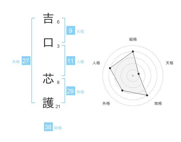 吉口 芯護さんを姓名の画数から五運を鑑定