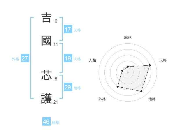 吉國 芯護さんを姓名の画数から五運を鑑定