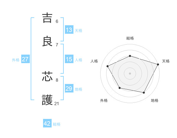 吉良 芯護さんの天格は13画の5点!