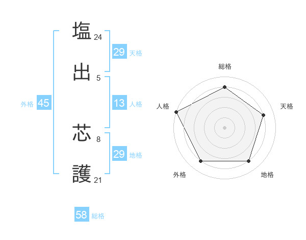 塩出 芯護さんを姓名の画数から五運を鑑定