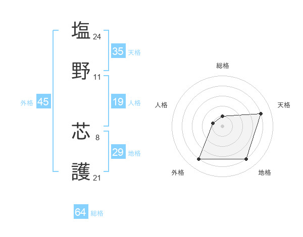 塩野 芯護さんの総格は64画の1点!