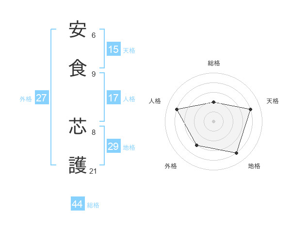 安食 芯護さんの総格は44画の2点!
