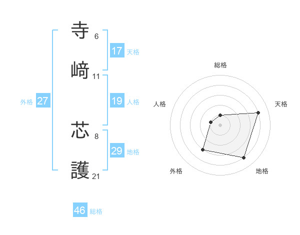 寺﨑 芯護さんを姓名の画数から五運を鑑定