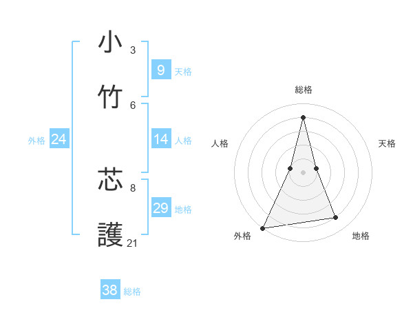 小竹 芯護さんを姓名の画数から五運を鑑定