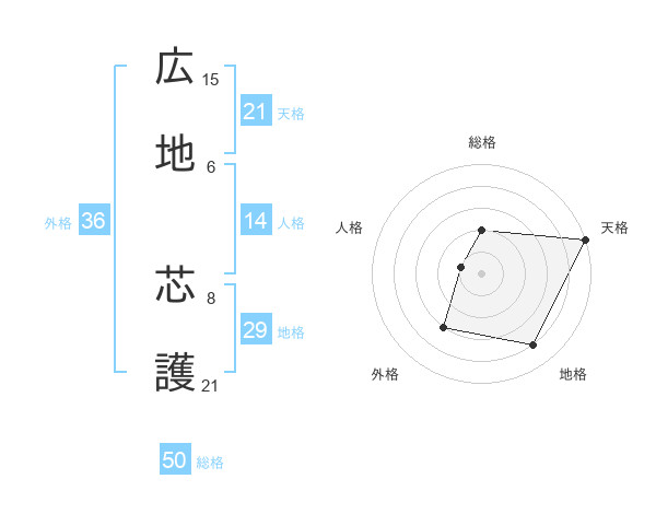 広地 芯護さんの天格は21画の5点!