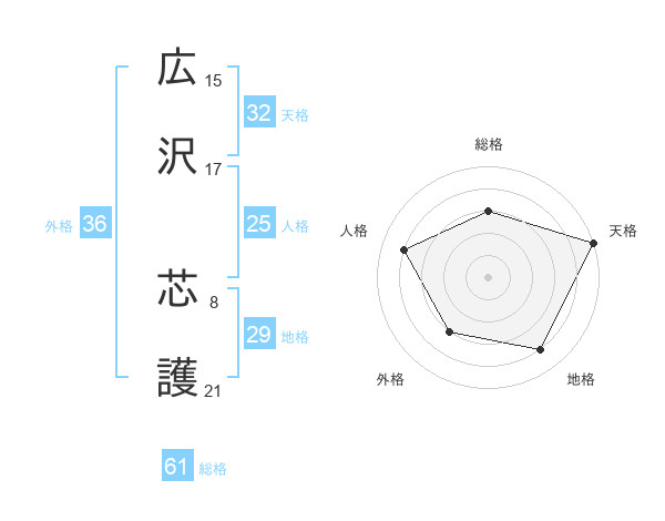 広沢 芯護さんを姓名の画数から五運を鑑定