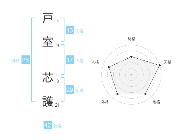 戸室 芯護さんを姓名の画数から五運を鑑定