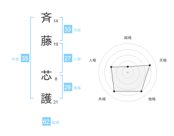 斉藤 芯護さんの天格は33画の4点!