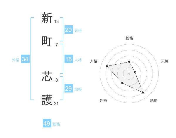 新町 芯護さんの総格は49画の2点!