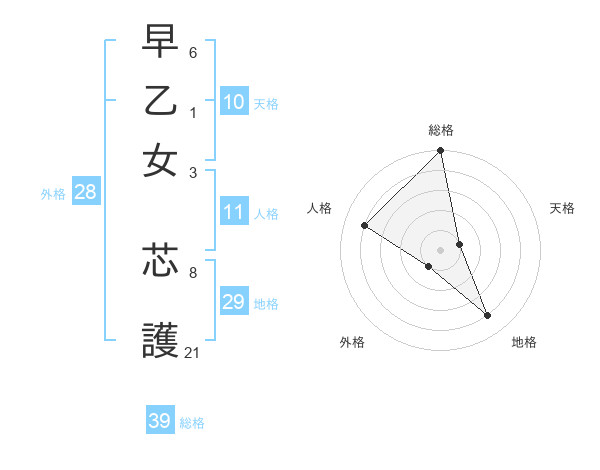 早乙女 芯護さんを姓名の画数から五運を鑑定
