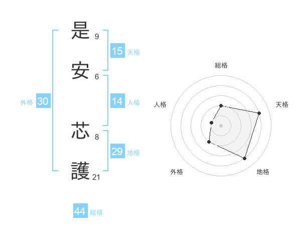 是安 芯護さんの地格は29画の4点!