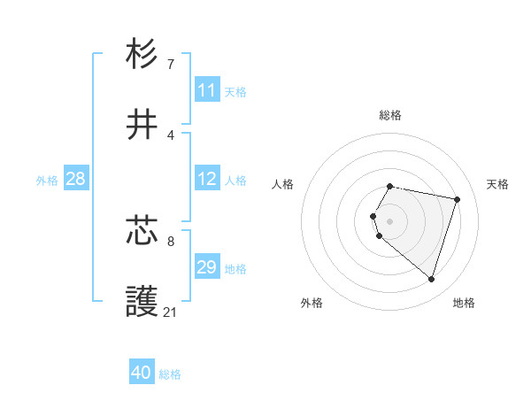 杉井 芯護さんを姓名の画数から五運を鑑定