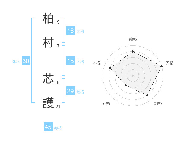 柏村 芯護さんの総格は45画の4点!