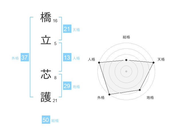 橋立 芯護さんを姓名の画数から五運を鑑定