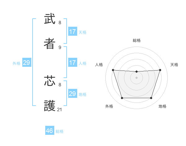 武者 芯護さんの地格は29画の4点!