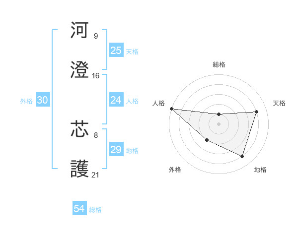 河澄 芯護さんの総格は54画の1点!