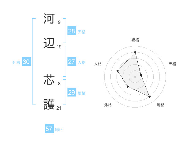 河辺 芯護さんの総格は57画の4点!