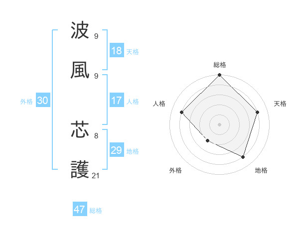 波風 芯護さんの総格は47画の5点!