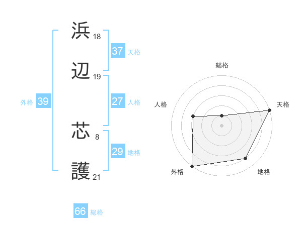 浜辺 芯護さんの総格は66画の1点!