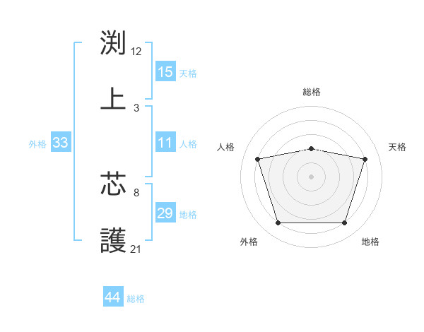 渕上 芯護さんを姓名の画数から五運を鑑定