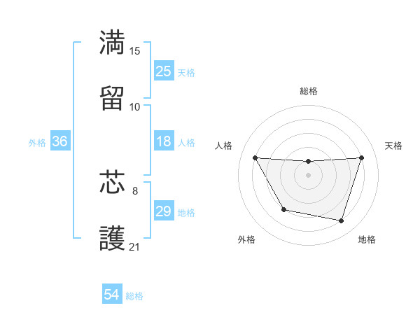満留 芯護さんの総格は54画の1点!