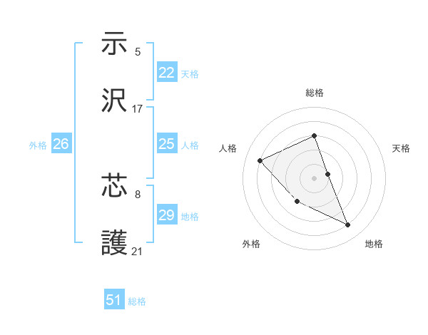 示沢 芯護さんの外格は26画の2点!