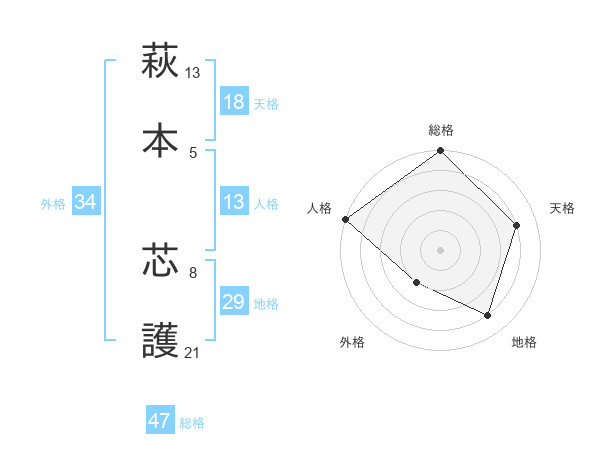 萩本 芯護さんの総格は47画の5点!