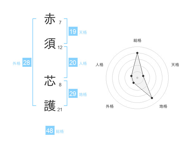 赤須 芯護さんを姓名の画数から五運を鑑定